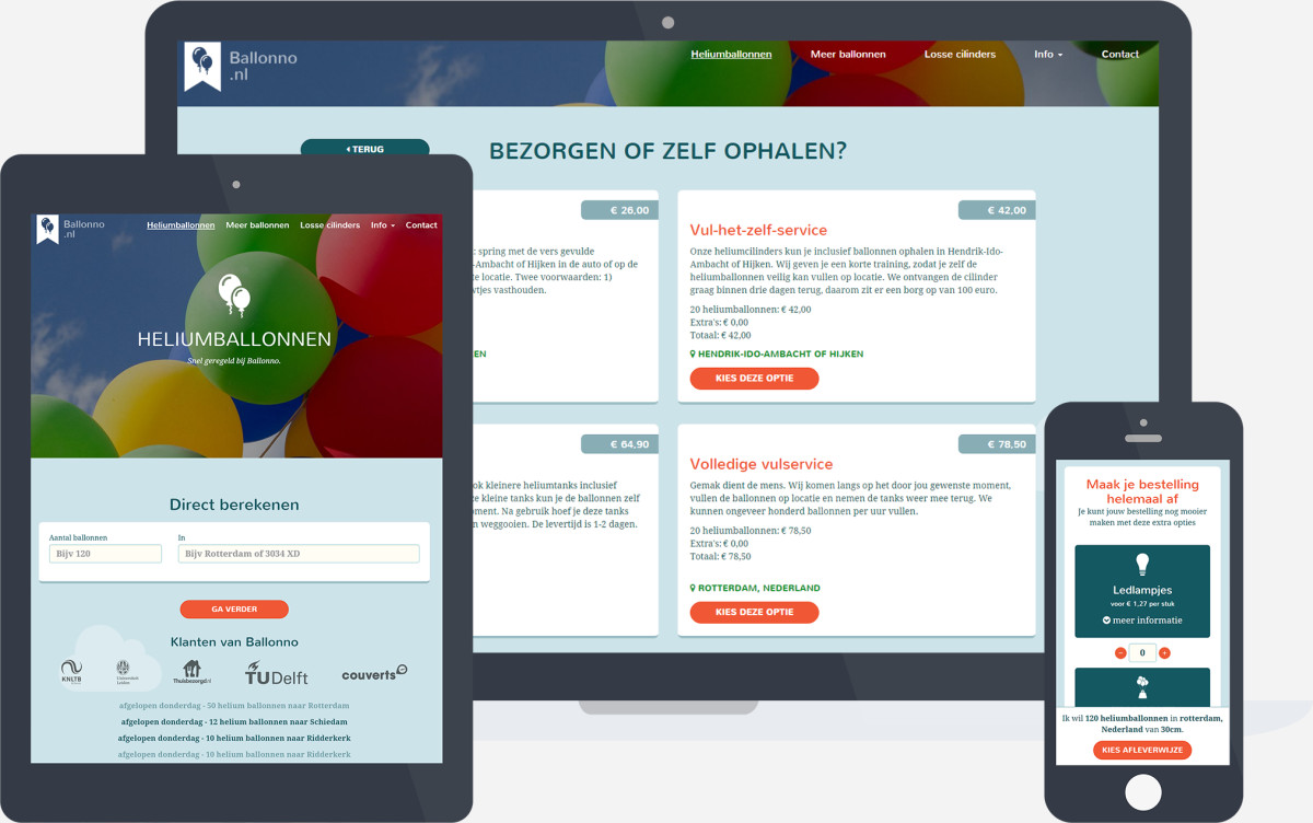 Ballonno specializes in delivering helium balloons. I started this company while I was studying. After a few years the initial website needed some serious redesign. My role was to manage the project, and I took on a large part of the development.
