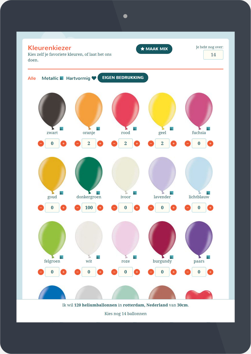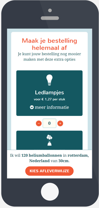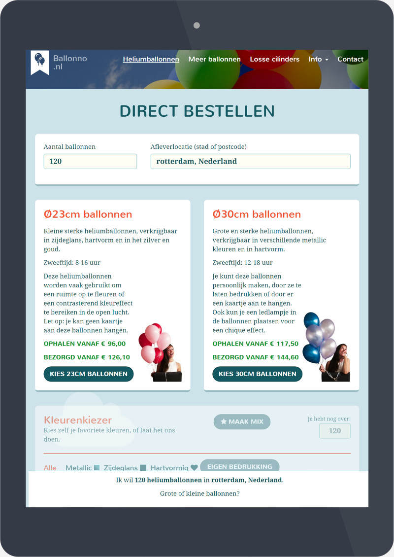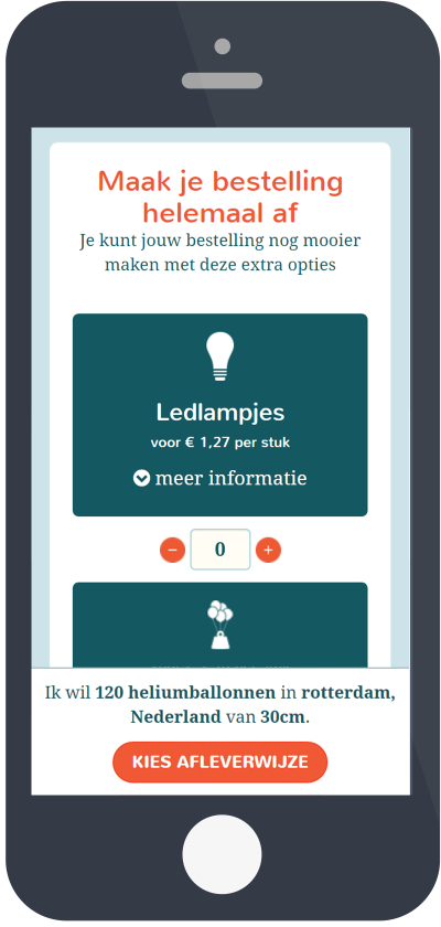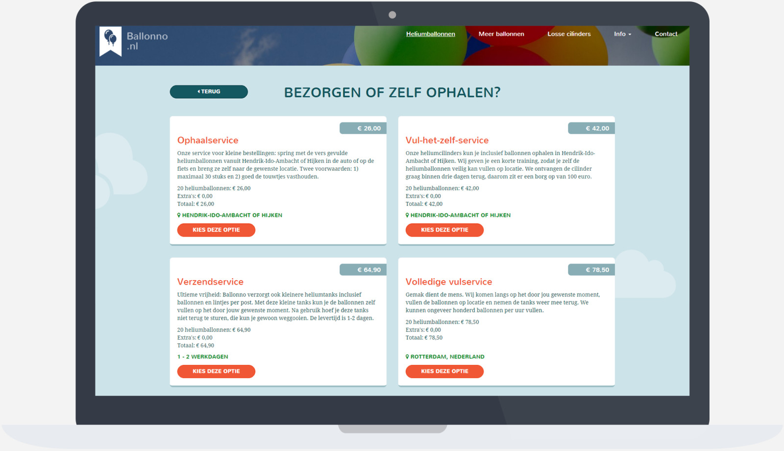 A challenging requirement for Ballonno.nl was to provide a user-friendly ordering process without making assumptions about the desired delivery method upfront. This would allow us to satisfy all sorts of customers.