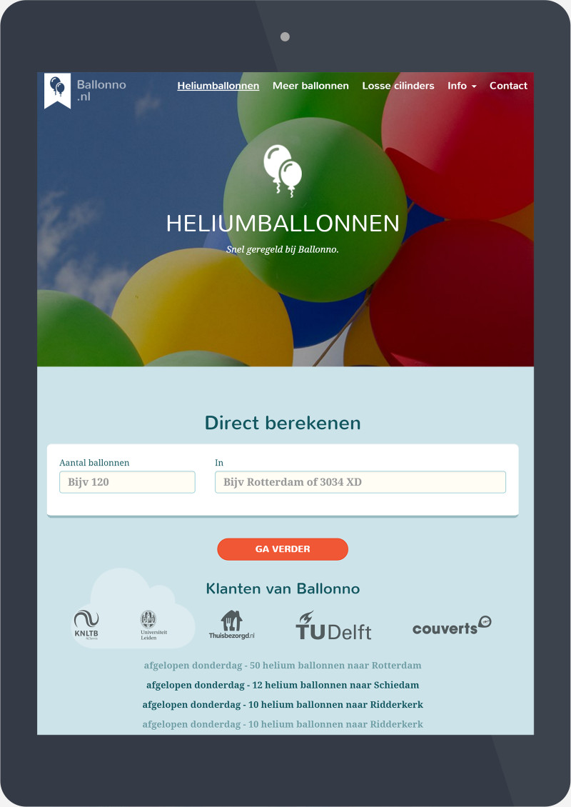 In terms of SEO, the website has been optimized for Dutch keywords relating to helium balloons. Without very much off-site SEO effort, we currently have top position for "helium ballonnen Rotterdam".