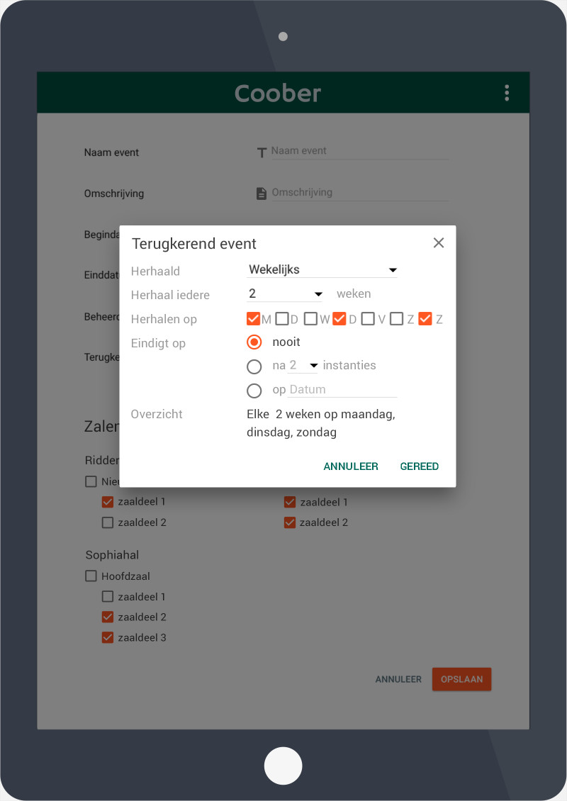 From the start, operators had used the standard UI of Google Calendar to manage the availability of their facilities. However, the Google UI didn't work well for sports halls that could be partly rented.